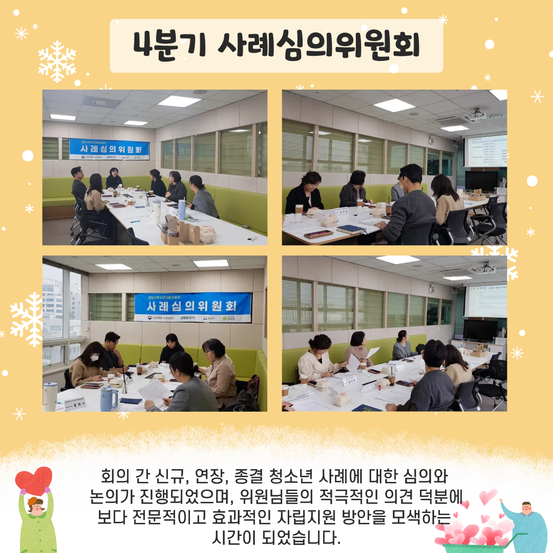 사례심의위원회 및 통합운영위원회, 종사자 수상, 기업 후원 소식 등 청소년의 자립을 위한 따뜻한 동행의 시간이 가득했습니다.