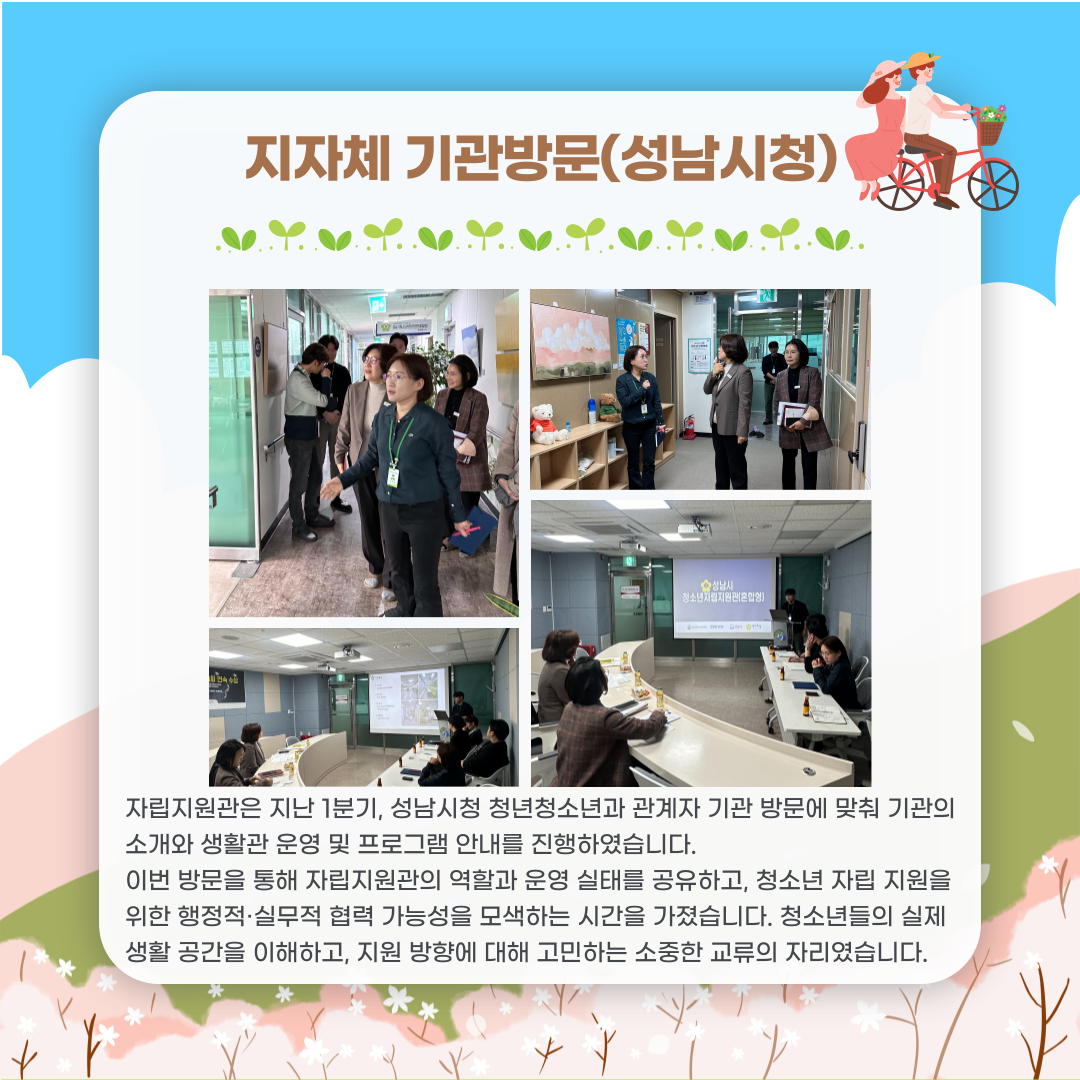 | 2025년 성남시청소년자립지원관(혼합형) 1분기 소식지 Vol. 2 | 작성자 : 관리자 | 등록일 : 2025.04.17 |