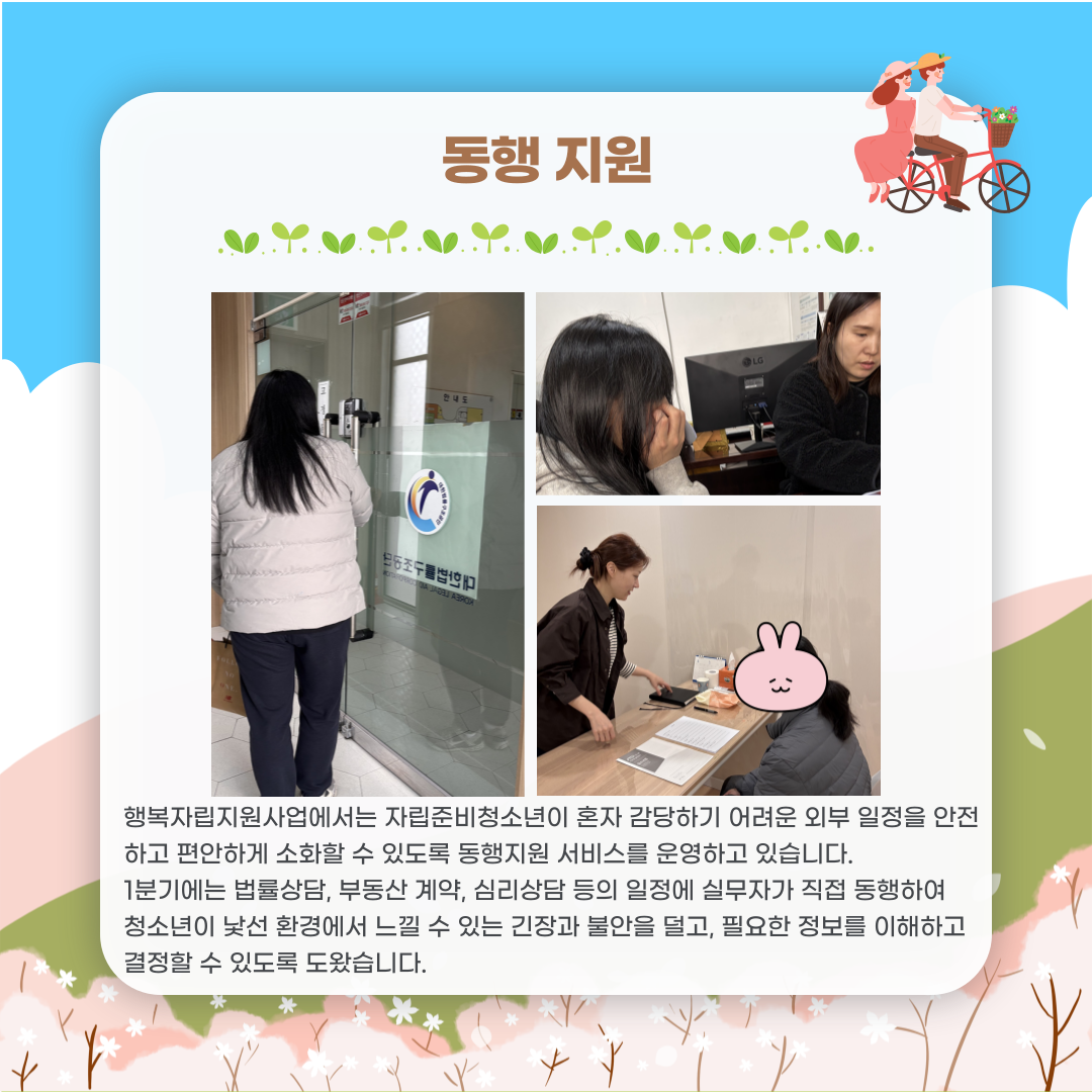 2025년 1분기, 청소년 자립을 위한 다양한 활동이 진행되었습니다. 내부 프로그램 운영부터 외부 협력, 행복자립지원사업까지 청소년을 위한 실질적인 지원의 내용을 소식지에 담았습니다.