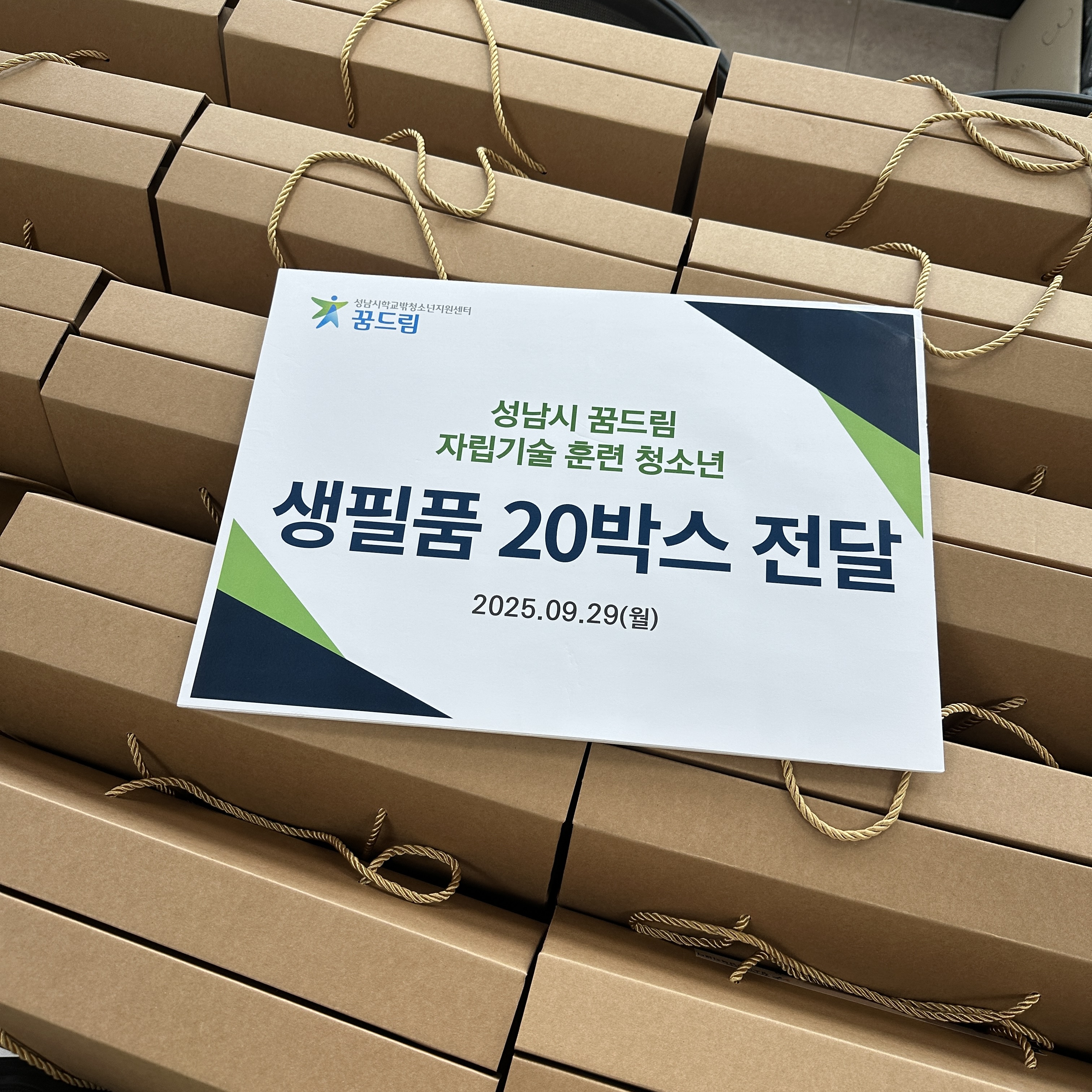 | 성남시청소년자립지원관(혼합형)-성남시학교밖청소년지원센터 꿈드림 생필품 전달식 | 작성자 : 관리자 | 등록일 : 2025.09.30 |