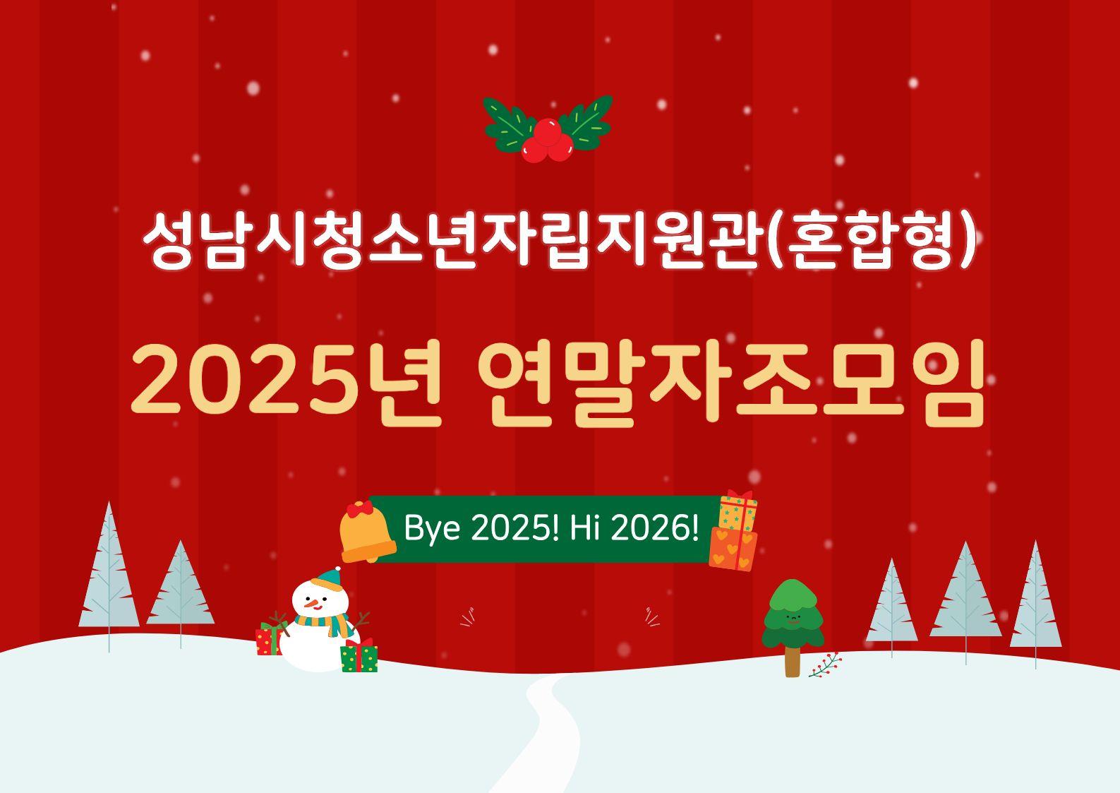| 2025년 성남시청소년자립지원관(혼합형) 연말 자조모임(25.12.19.) | 작성자 : 관리자 | 등록일 : 2025.12.19 |