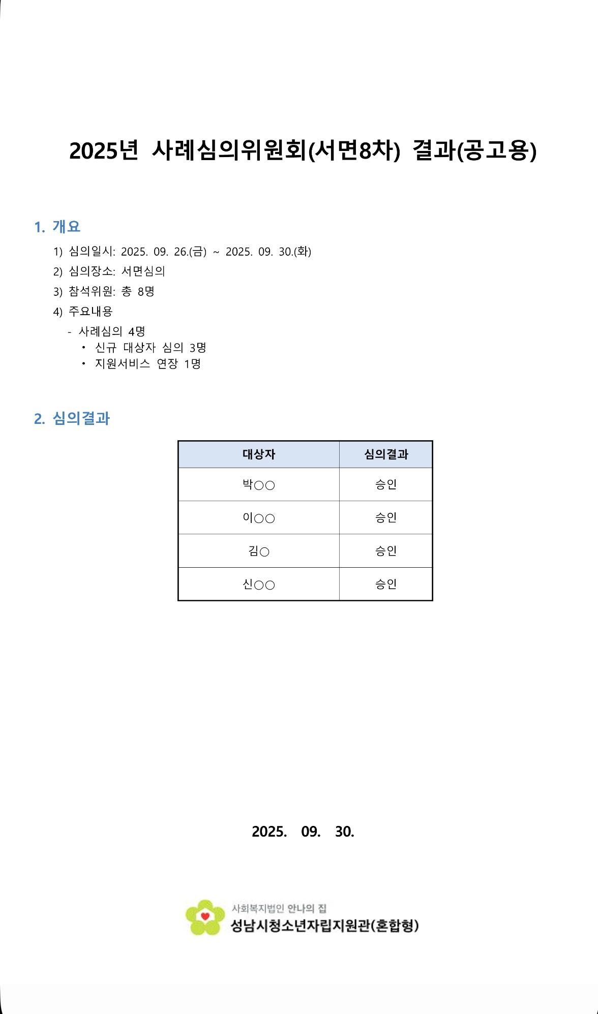 [사례심의] 2025년 사례심의위원회(서면8차) 결과공고